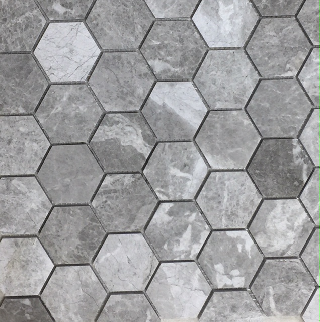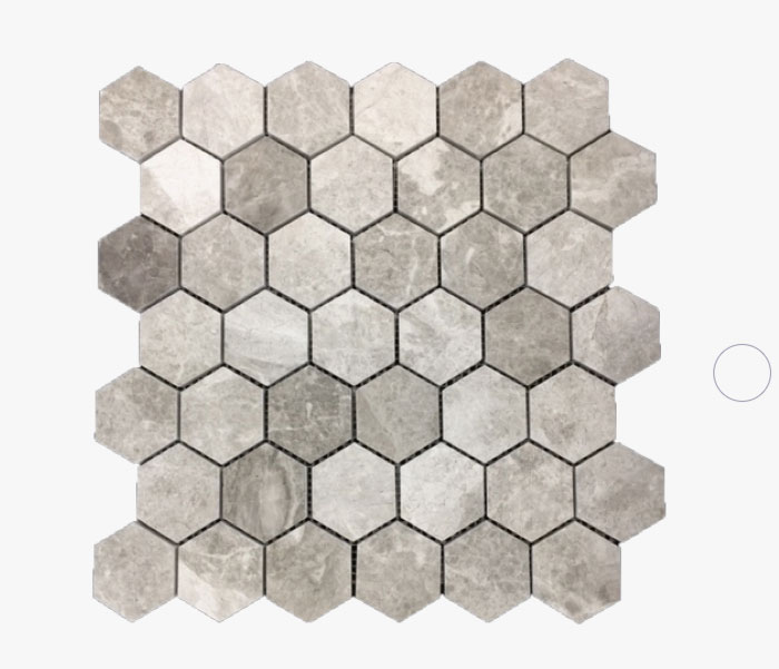 Tundra Grey Limestone Mosaics (Hexagon) are currently stocked in a 48 x 48 x 8mm.